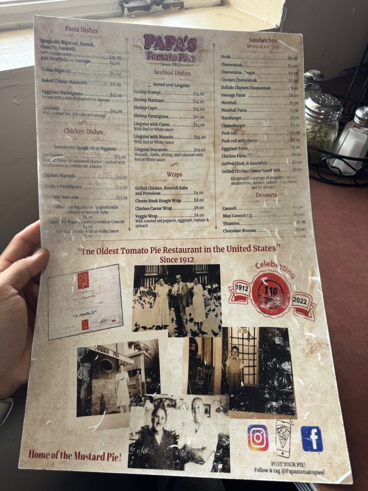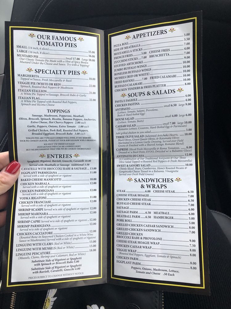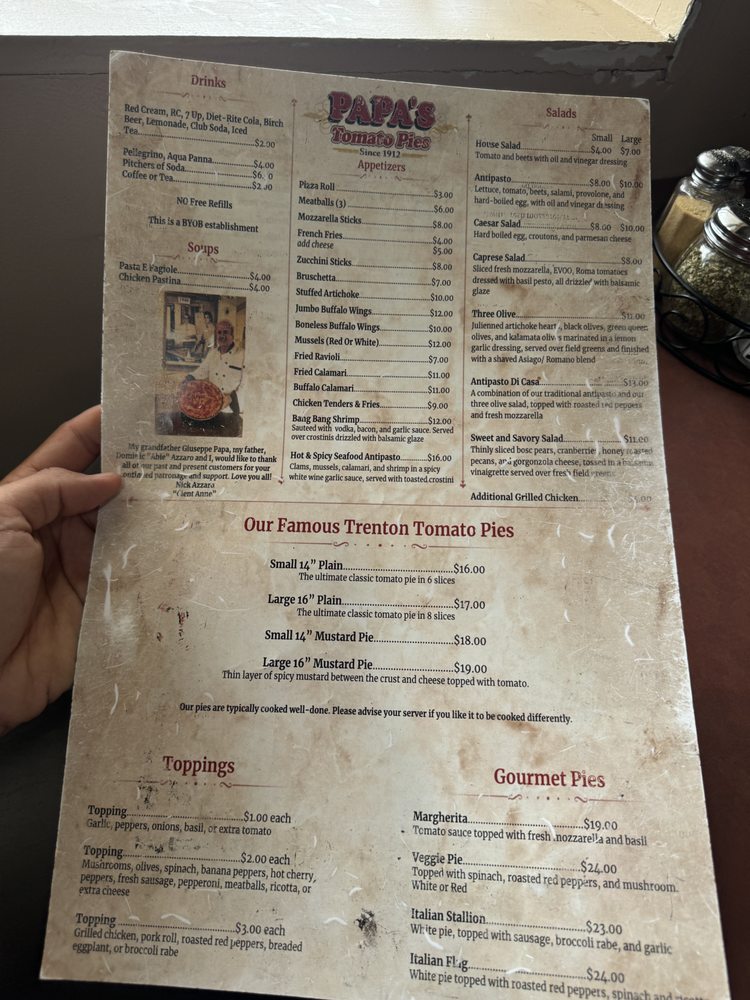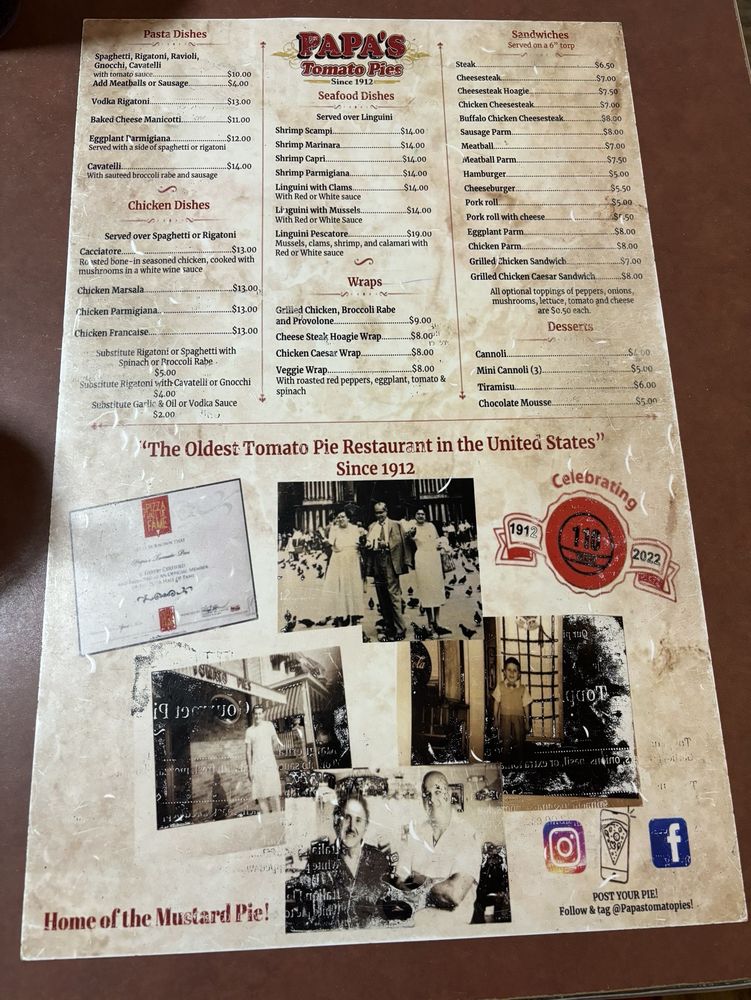 At Papa’s Tomato Pies in Robbinsville, NJ, you can indulge in their signature Tomato Pie, featuring a thin layer of spicy brown mustard beneath the cheese and tomato sauce. The menu also offers unique specialty pies like the Veggie Pie with spinach, roasted red peppers, and mushrooms, and the Italian Stallion with sausage, broccoli rabe, and garlic. Customers rave about the flavorful and crispy thin crust, perfectly cooked toppings, and the homey atmosphere reminiscent of old-school comfort. Must-try appetizers include the Pizza Roll and Fried Calamari, while the Pasta e Fagiole soup and Antipasto salad are also highly recommended. Whether you’re a tomato pie enthusiast or just looking for a delicious and authentic pizza experience, Papa’s Tomato Pies is a must-visit destination.